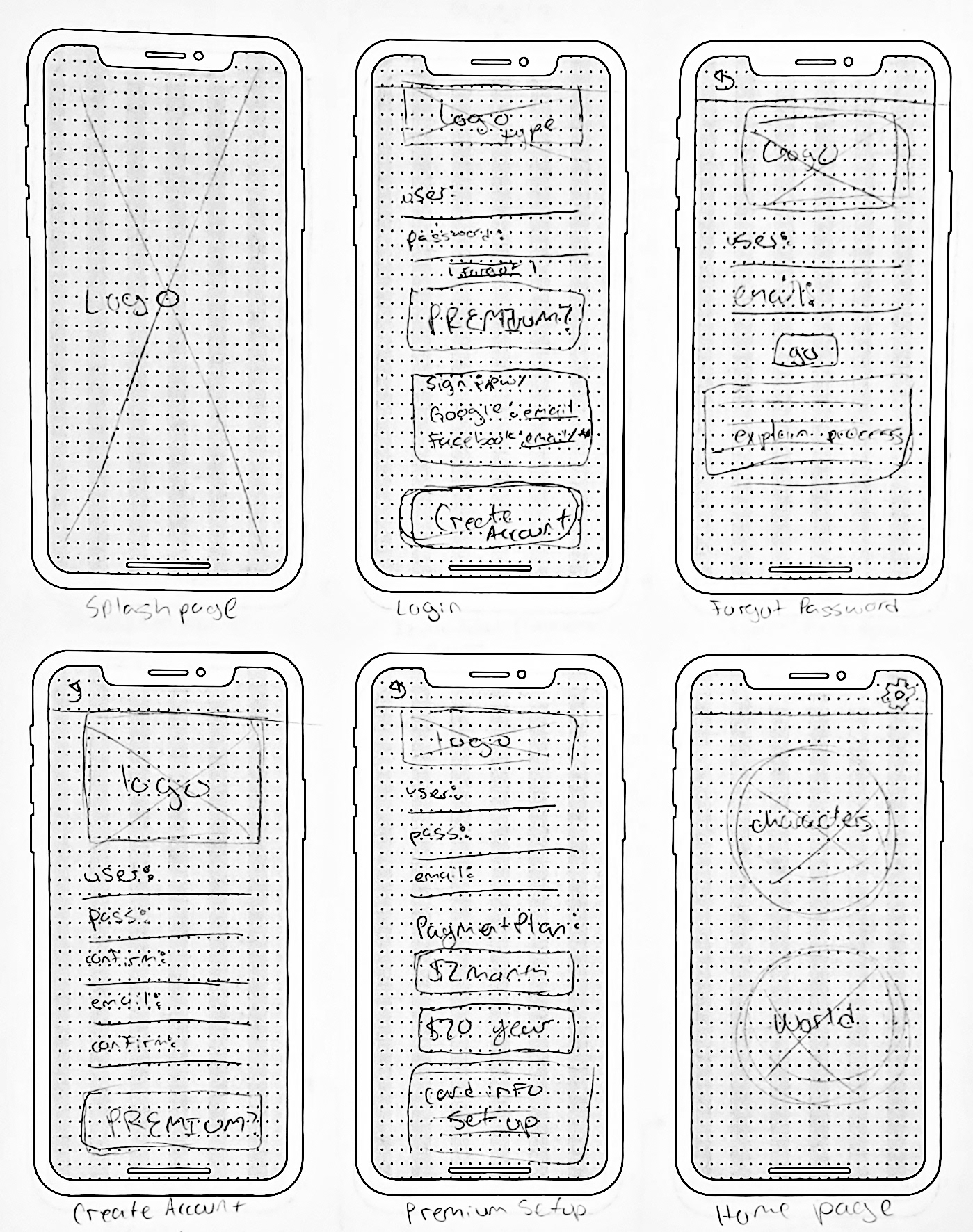Design Brief: StoryKeeper is an app that allows writers to compile all the information about their characters and map in one place. StoryKeeper’s logo is represented by the letters S and K with a digital landscape within the space of the letters, as well as a pencil that makes up the top diagonal line of the K. The colors chosen for this landscape are also used throughout the rest of the app, with each color representing a different type of screen. Login screens are yellow, Premium screens are light green, Basic screens are dark green, Character screens are orange, and Map screens are blue. All the icons in the app have simplistic designs with rounded edges to fit with the branding. StoryKeeper is free to use regularly but has a premium version that gives the user several more features. The two main features of the app are the Characters Boards and the Map Boards. In the Characters Boards of the app, the user can input information about all the characters from their story and how they may relate to one another. In the Map Board of the app, the user can draw or import a map of their story and provide additional information about specific sections of their map on a Tracker Board. The app also has a Dark Mode which offers a nighttime version of the background.